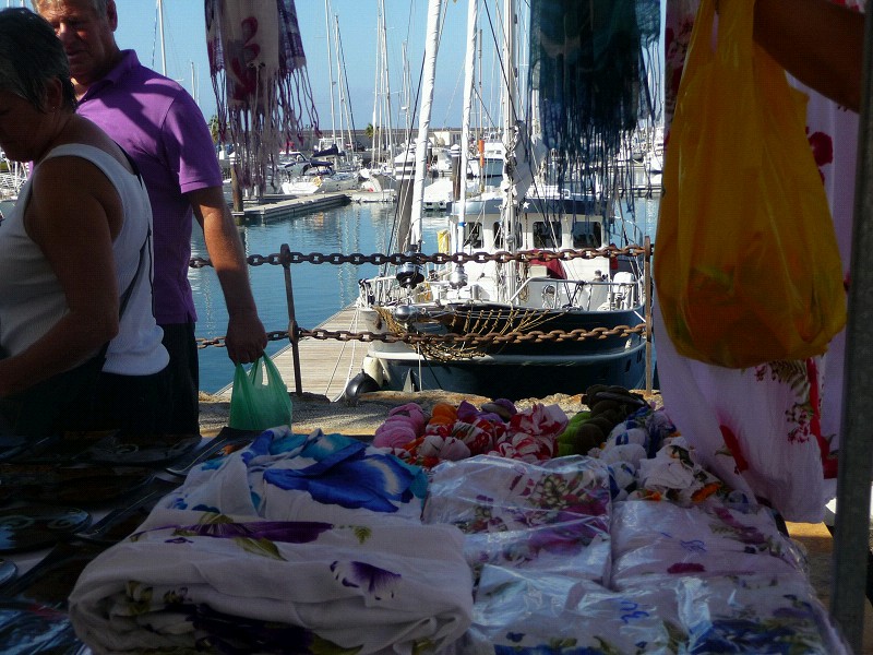 Heute morgen, ein gut besuchter Flohmarkt. Heimkehr mittendrin, gleich hinter den Unterhosen.