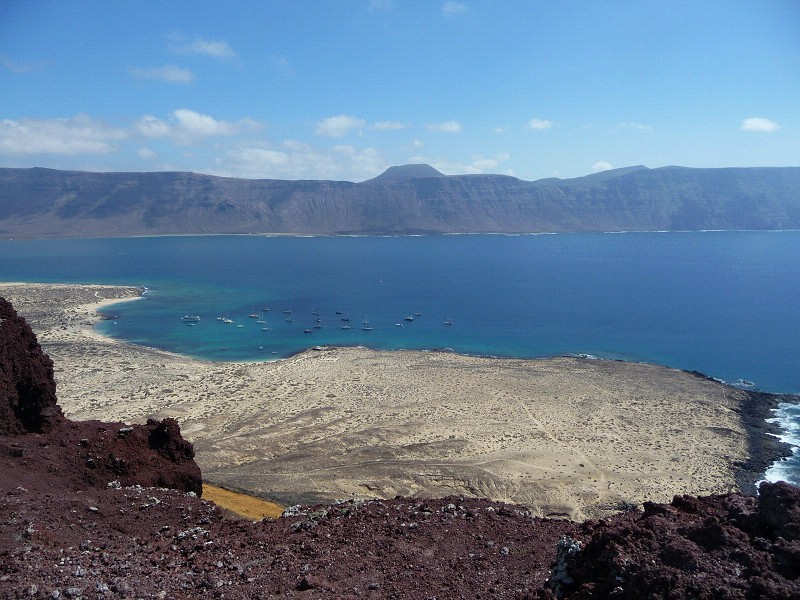 … ist hier in Caleta del Sebo nicht viel los. Auf der Insel Graciosa gibt’s nur dieses Dorf und eine kleine Feriensiedlung. Aber wir bekommen gutes Fleisch und es gibt so eine Art Cafe. Internet hinter dem Restaurant. Ganz ok. Aber die Bucht ist cool.