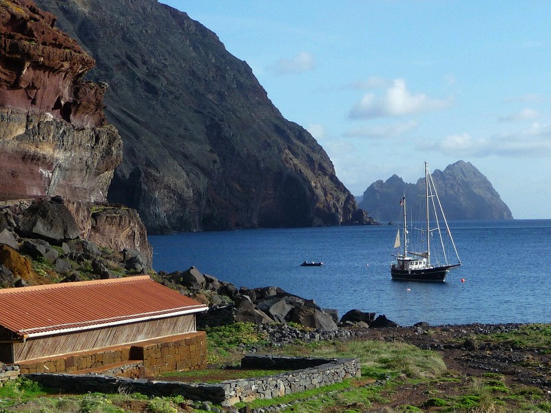 Nur 15 Meilen südlich von Madeira. Da sind wir hingesegelt, haben Heimkehr an die Mooring gelegt und sind mit dem Beiboot an den Steinstrand. Die Genehmigung zum Besuch der Insel hat uns – na wer schon? genau: die zauberhafte Joana aus Quinta do Lorde besorgt. Die Ranger zeigen uns ihre Station und wir bekommen entlang eines kleinen Lehrpfades alles über Flora und Fauna erzählt. Die sind dort genauso autark wie wir auf unserem Schiff. Machen Strom mit Sonnenenergie und Trinkwasser mit dem Wassermacher. All’s well Marlene______/)_____