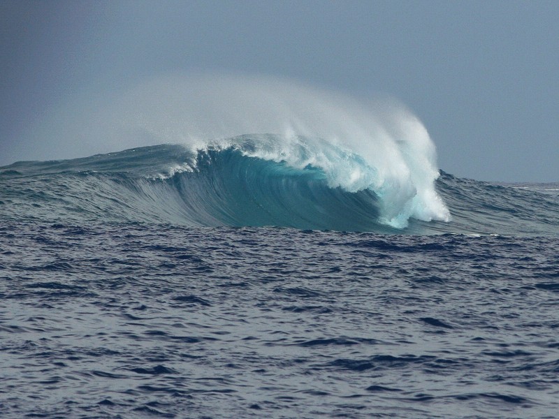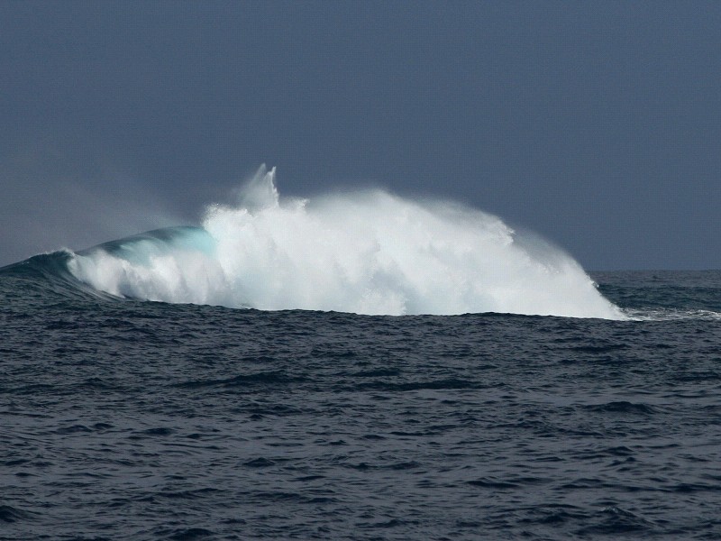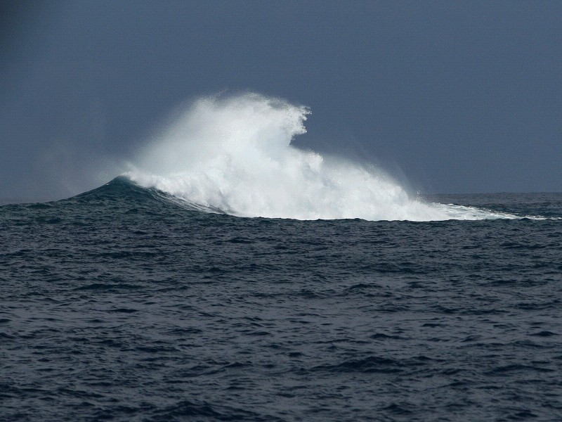Ilhas Selvagens, Atlantik. Ganz weit von Oberndorf. Durch diesen Hexenkessel mussten wir, um zum einzigen Ankerplatz dieser Inseln zu kommen. Die Riffe liegen nur 150 m auseinander. Auf denen bricht sich die Atlantikdünung in einer Höhe von 5 oder 6 Metern, vielleicht auch viel mehr. Dieses Riff war wohl 80 m von uns entfernt. Solche Seen haben wir von Heimkehr aus bisher nicht gesehen. Achterbahn im Atlantik. Leni hat fotografiert, ich hatte ganz gut zu tun.