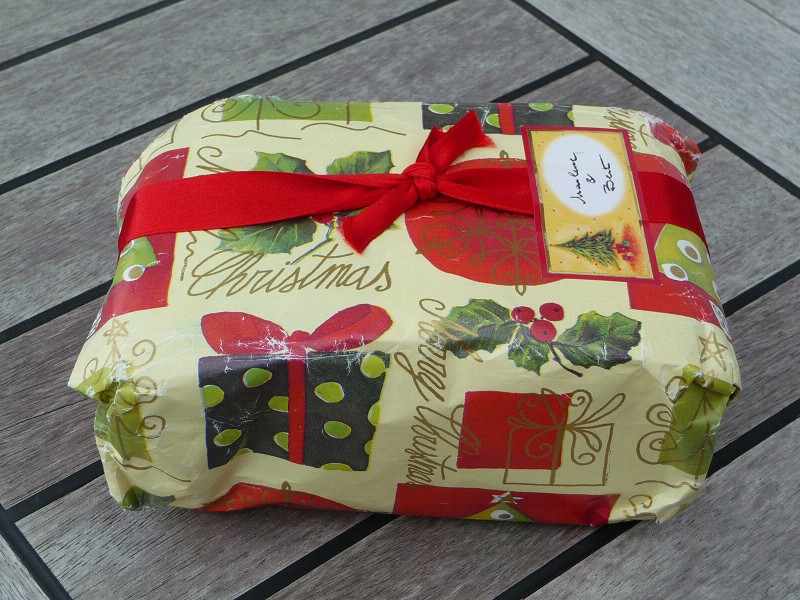 Wenn man (und Frau) sich von zu Hause für ein halbes Jahr verabschiedet, kann sowas passieren. Da hat uns die weitschauende Beate doch das Päckchen mitgegeben. Sie hat uns versprochen, dass es sich nicht um frische Fische handelt, und wir ihr, dass wir es erst am 24.12. öffnen. Mal sehen, wo wir dann sind.