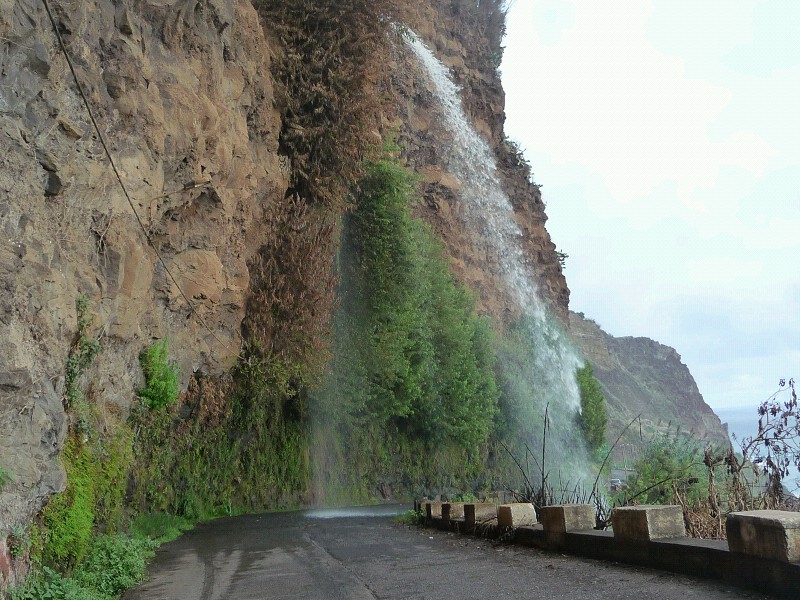 Quinta do Lorde, Madeira, Portugal, 2076,4 Semeilen seit Oberndorf. Hier in Madeira regnet es. Aber es ist trotzdem schön warm. Es gibt eine für die Jahreszeit ungewöhnliche Wettersituation: Da, wo sonst das für ganz Europa wetterbestimmende Azorenhoch sitzt, ist jetzt ein dickes Tief. Für uns heißt das südliche Winde und warten, bis die Sache sich wieder gedreht hat. Sieht aus als wenn’s ne Woche dauert. Das Warten fällt uns hier nicht schwer. Macht nix.