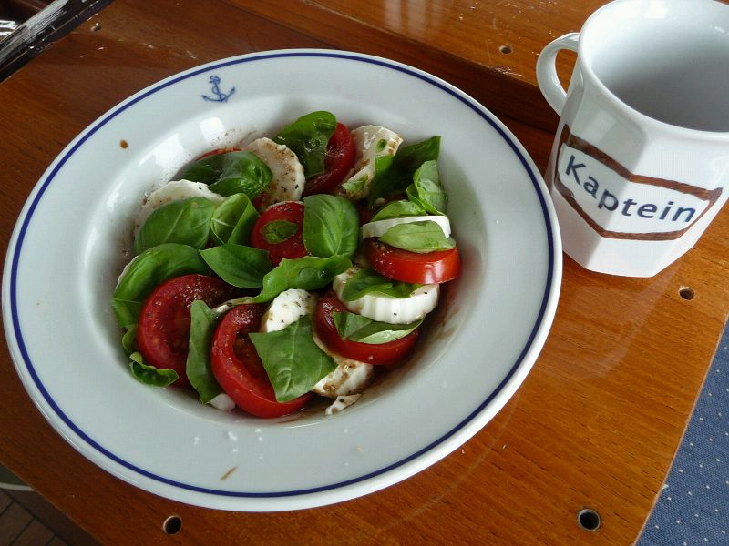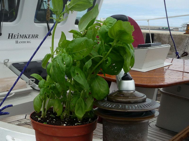 Hat die ‘Momo’ uns doch einen Riesentopf Basilikum aus Lagos mitgebracht. Der hat sich mittags gleich ausgewirkt. Eigenartigerweise haben wir hier nie Basilikum gefunden.