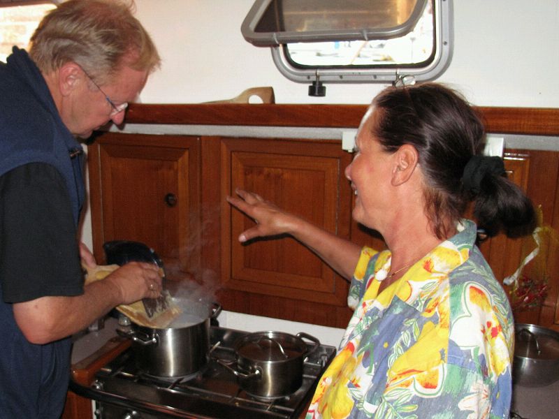 Ist doch genau der richtige Ort. Hier in Porto Santo bringt Brigitte mir bei, wie man Spätzle schabt. Hat ganz gut funktioniert. Und lecker waren sie sowieso. Hermann in Freiburg wird stolz auf mich sein.