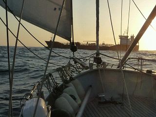 Für den Ausruf gab’s früher ein Goldstück. Bei uns aber immerhin ein Stück Schokolade und den Sundowner. Ganz kurz vor einem spektakulären Sonnenuntergang auf 40 Meilen Entfernung sahen wir die ersten Berge von Porto Santo. Der höchste Berg dort ist auch immerhin 500 m hoch. Ein Augenblick, der uns berührt hat. Die schnelle Momo (www.momosmeilen.de) ist schon eingelaufen und hat von einem aufregenden Landfall über Kurzwelle berichtet. Wir sehen die Insel erst morgen früh wieder, weil, jetzt ist es dunkel. Haben uns entschieden weiterzusegeln (wenn auch langsam) und nicht den Diesel anzuschmeißen. Es ist heute Abend wunderschön, kurz vor dem Ziel so ruhig mit Passatbesegelung und klassischer Musik dahin zu schippern. Wenn’s moren früh hell wird, werden wir einlaufen. ____/)____ Viermal Delphinschulen-Besuch heute. Die Vormittags-Truppe war besonders fröhlich. Einer ist bestimmt drei bis vier Meter aus dem Wasser gesprungen. War ein Mädchen, hatte einen rosa Bauch. Nachmittags waren die Großen da. Elegant, völlig ruhig, genau in Schiffsgeschwindigkeit. Und völlig synchron im Fünferpack. ____/)____ Es gab einen leckeren Kartoffelsalat mit Mais. Und Dölling Würstchen, klar._____/)_____Bert