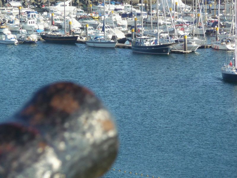 In See, Atlantik, 1593,7 Seemeilen von Oberndorf. Heute morgen sind wir los. Da der stabilisierende Wind fast ganz fehlt, etwas wackelig, aber in kurzen Hosen. Das große Angelgeschirr ist ausgebracht, weil’s hier leckere Bonitos geben soll. Hab einen totschicken Plastiktintenfisch dran, den muß der mögen. Der Atlantik ist wieder tiefpelikantintenblau, wunderschön unendlich weit, der Blick stößt nirgendwo an. Cool. Noch 439 Meilen bis Porto Santo, das ist die sandige Insel kurz vor Madeira. Von Navi gerechnete Ankunftszeit nächste Woche Dienstag Mittag. Hab ein Gulasch-Chilli vorgegocht und zwei Brote gebacken. ____/)_____Sea u Bert