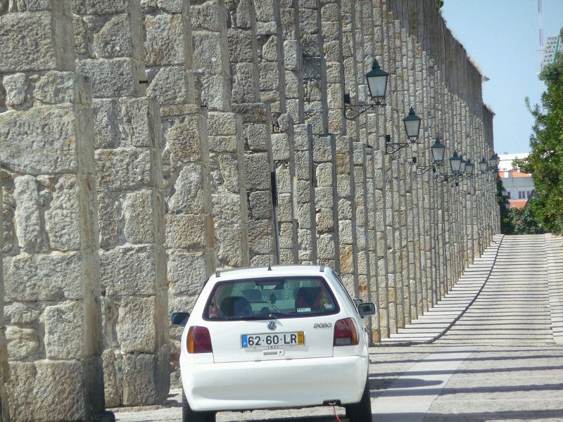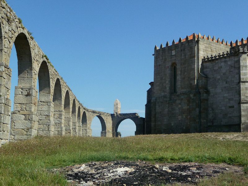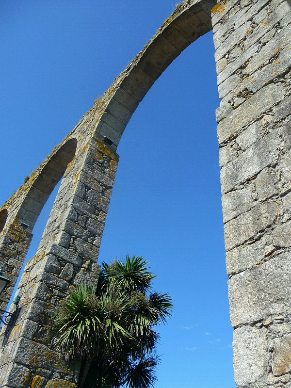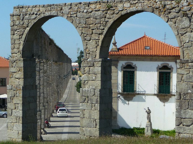 Das begeistert mich mindestens so wie die Brücke in Porto. Diese Wasserleitung wurde zwischen 1628 und 1714 gebaut um das Kloster Santa Clara mit Wasser zu versorgen. Es sollen 999 Bögen gewesen sein, auf eine Länge von 5 Kilometern. Mehrere Kilometer sind erhalten. Übrigens: wer mag, kann die Wasserleitung in Googl Earth verfolgen. Also auf der Heimkehr-Seite Position bis zum nächsten Fluss nach Süden, ein kleines Stück den Fluss rauf. Da sieht man dann das Kloster, in dass das Aquadukt mündet. Voller Begeisterung über die alte Wasserleitung: Bert und Marlene____/)___