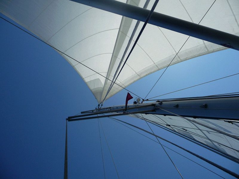 It’s my turn. Nach fast 4 Stunden durchgeschlafen (und das bei dem Seegang in der Koje im Vorschiff!) komme ich munter auf die ‘Brücke’. Der Kakao dampft schon im Becher (Danke, Skipper) und mein zweiter Blick ist bei den Sternen am Himmel. Da sind doch tatsächlich schon der Orion und die Plejaden zu sehen – es wird Herbst. Der Mond verwandelt das Meer in flüssiges Silber. Dann geht die Sonne auf, ein glutroter Ball schiebt sich über die Berge im Osten. Das ist mit einer der schönsten Momente während der Wache, das Radar, die Beleuchtung kann aus, alles ist wieder mit eigenem Auge zu sehen – auch die heimtückischen Fischerbojen, die plötzlich aus dem Nichts auftauchen. Dabei ist es hier über 100 m tief. Was da wohl dranhängt? Meine Wache geht bis 9 Uhr, dann wecke ich den Skipper und es wird gepelzt (duschen mit Pütz und Seewasser) = herrlich!!!