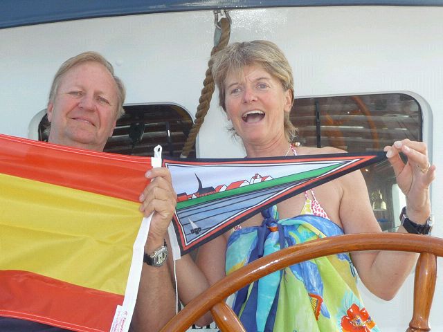Ist Seemannsbrauch, die Flagge des Gastlandes an der Steuerbordseite zu setzen. Eine Frage der Höflichkeit. Heißt daher im englischen auch Courtesy Flag. Und Auf der Backbordseite ist natürlich der Stander der Oberndorfer Segler gesetzt.