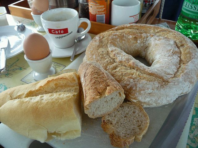 Camarinas Spanien, vor Anker. 1128 Seemeilen von Oberndorf. Das hätten wir uns schon anders vorgestell. E§s regnet seit heute Nacht. Versöhnlich ist, dass es schön warm is dabei. Leute sagen, es würde nachher aufhören. Aber ich glaub, die waren vom Touristbüro. Trotzdem haben wir tüchtig das Dorf erwalkt, unsere nordischen Walkstöcke wurden belustigt und bemitleidet: In dem Alter müssen die schon an zwei Stöcken laufen. Dabei haben wir schnell spanisch gelernt und tolles Brot gekauft. Richtiges Sonntagsfrühstück. Vorher geschwommen, versteht sich. Die Wassertemperatur passt zu uns: Frisch. Wie’s weitergeht, wissen wir noch nicht. Nach Süden, klar. Aber wir haben Zeit, das ist ein ganz neues Gefühl.________/)______