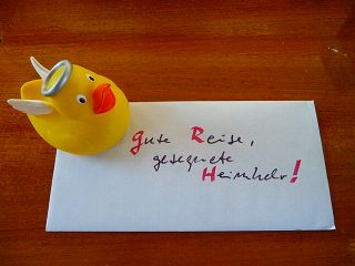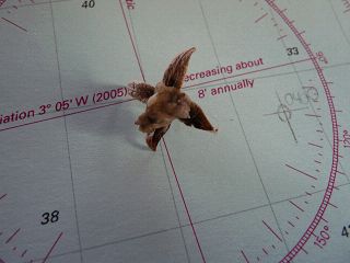 In See. Von den Dingern hatten wir eine Million an Bord. Völlig zugeschneit war der Kutter. Jetzt, 536 Meilen von Oberndorf, sind immer noch welche da. Die Biester halten hartnäckig gegen jeden Wasserstrahl. Werde einen Preis aussetzen für jeden, der gefunden wird. Und da wir die immer über Bord spülen, werden hier im Englischen Kanal bald jede Menge Pappeln wachsen. Oberndorfer. ______/)_____Sea u Bert