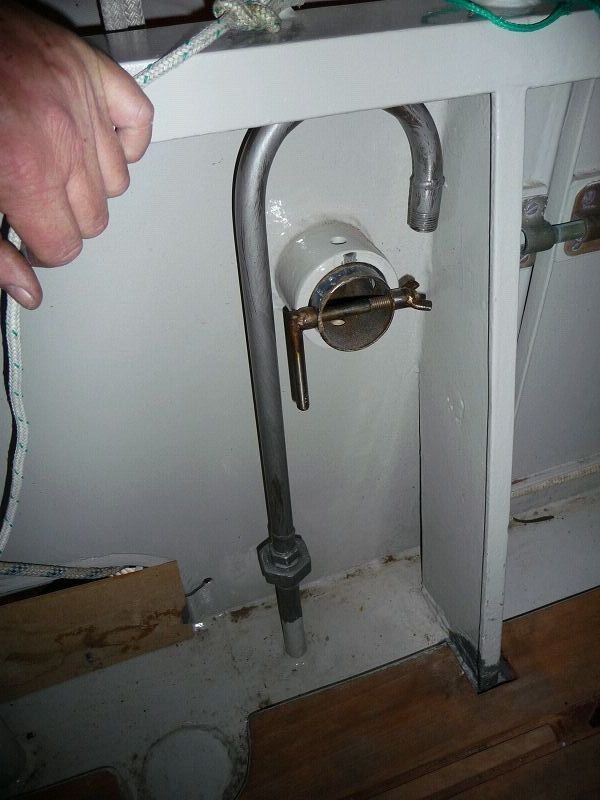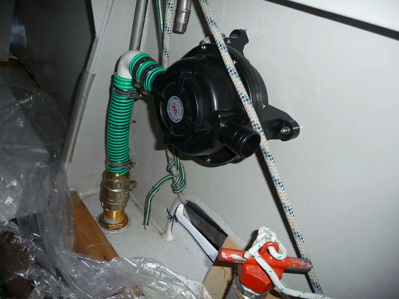 Eine Handlenzpumpe an Deck, schreibt der World Cruising Club vor. Die haben einige Sicherheitsvorschriften, deren Einhaltung in Las Palmas überprüft werden. Da wir sowieso einen Sicherheitsfimmel haben, haben wir da nix zu befürchten. Eine freiwillige Sicherheitsüberprüfung durch die englische Rettungsgesellschaft RNLI im letzten Jahr in Schottland hat das bestätigt. Nur ‘ne Handlenzpumpe an Deck hatten wir noch nicht. Nu isse da. Sea u Bert ___/)___/)_____