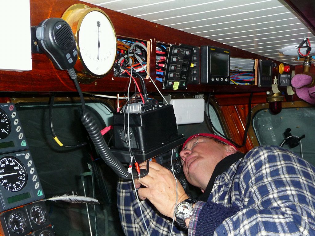 der Einbau des neuen UKW Gerätes, nun mit DSC. Dies bedeutet im Notfall fast doppelte Reichweite und automatische Übertragung der GPS Position.
