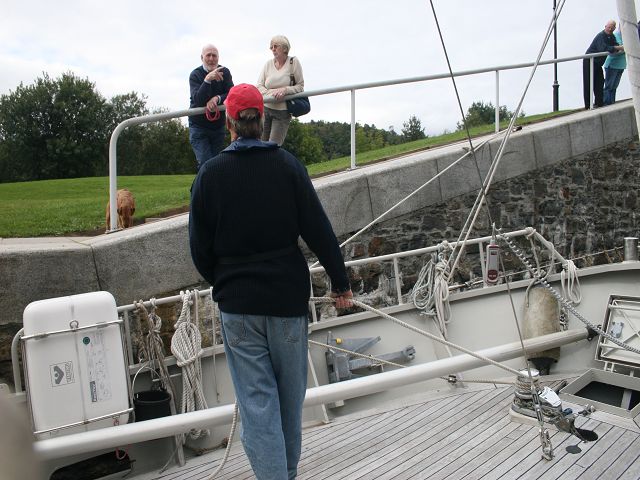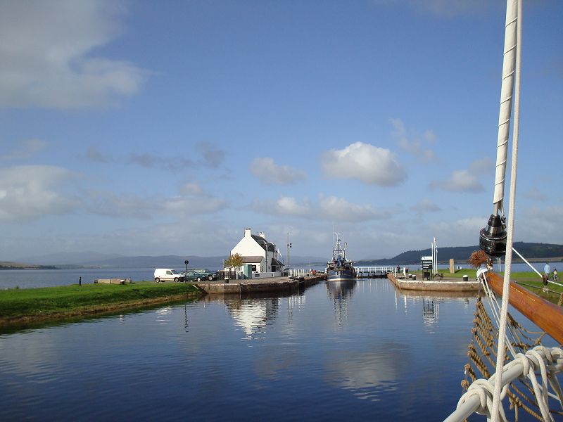 In der letzten Seeschleuse des Caledonain Canals treffen wir einen großen Fischkutter. Mit dem Fischer geschnackt, Rat geholt für die sehr schwierige Ausfahrt. Er: ‘just follow me its tricky’. Er will nach Newcastle, noch 140 Meilen weiter als wir. Fragt noch, wie schnell wir sind. Nach dem Auslaufen blieb er immer genau, ganz genau 0,5 Meilen vor uns. Sein Kontakt auf dem Radarschirm war 14 Stunden lang genau auf dem Entfernungsring. Hat uns total gerührt. Wir haben in und vor den Häfen hier sehr viele nette Leute kennengelernt.
