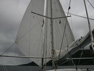 Nachdem der landesübliche Regen aufgehört hatte, sind wir mit den Passatsegeln das Loch Ness raufgesegelt. Am Anfang gab’s noch den Regler des Backbord-Generators auszutauschen, der wollte die Batterie nicht mehr laden. Fein, dass wir so einen an Bord hatten. Den hat Anke uns mal nach Helgoland gebracht, als wir Auslaufhektik hatten. Nun hat’s geholfen, alles läuft wieder.