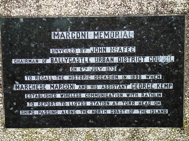 Speziell für Rolf, Dieter, Rainer und Jörg und andere Funker: Nachdem sie von Heinrich Hertz gehörthatten, dass sich elekrtomagnetische Wellen in der Luft befinden, waren Marchese Marconi und sein Assistent Gerge Kemp die Ersten, die im Jahre 1898, die drahtlose Kommunikation über See geschafft haben. Und zwar war das gleich hier um die Ecke. Die beiden Stationen waren Torr Haed bei Ballycastle und Rathlin Island. Die Distanz etwa 6 Seemeilen. Das ganze, um passierende Schiffe zu melden. In Bushmills (10 Meilen weiter östlich) war später auch eines der drei Consolfunkfeuer beheimatet. Das andere war in Starvanger, das Dritte hab ich vergessen. Dies war der Vorläufer des inzwischen abgeschalteten Navigationssystems Decca. Man konnte damals mit dem Auszählen von Punkten und Strichen seinen Standort in der Nordsee bestimmen. Seit GPS alles out. Out.