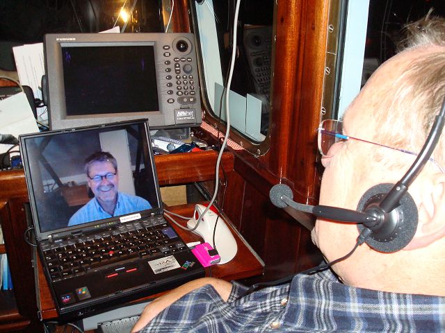 Skype ist ein weltbekanntes System der Internettelefonie. Für Vielquatscher wie mich erfunden. Und für Rentner auch, weil sehr sehr billig. Ein Telefonat mit USA kostet egal zu welcher Zeit 1,7Cent pro Minute. Von hier oder woanders in Europa in die Festnetze 4(!) Euro im Monat, egal wie lange ich telefoniere. Ein Gespräch mit Teams Design Freund Renner haben wir gestern abend als Bildtelefonat geführt. Er hat mir mit Schwenken der Kamera sein Haus gezeigt, ich ihm den Kutter. Die Webcam kostete 18 Euro, das Gespräch nix. Denn Skype zu Skype kostet nix, gar nix.