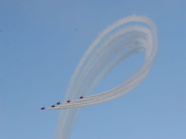 Ok, sie haben es nicht nur für uns gemacht, die Red Arrows, die Kunstflugstaffel der Royal Air Force. Trotzdem saßen wir an Bord in der ersten Reihe.