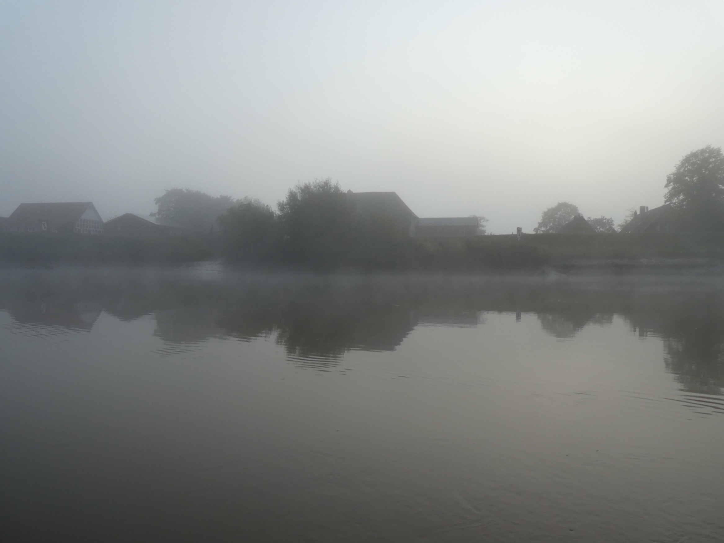 Oberndorf. Der Morgenblick aus meiner Koje: Nebel. Mein Vater nannte das „kleine Welt“.