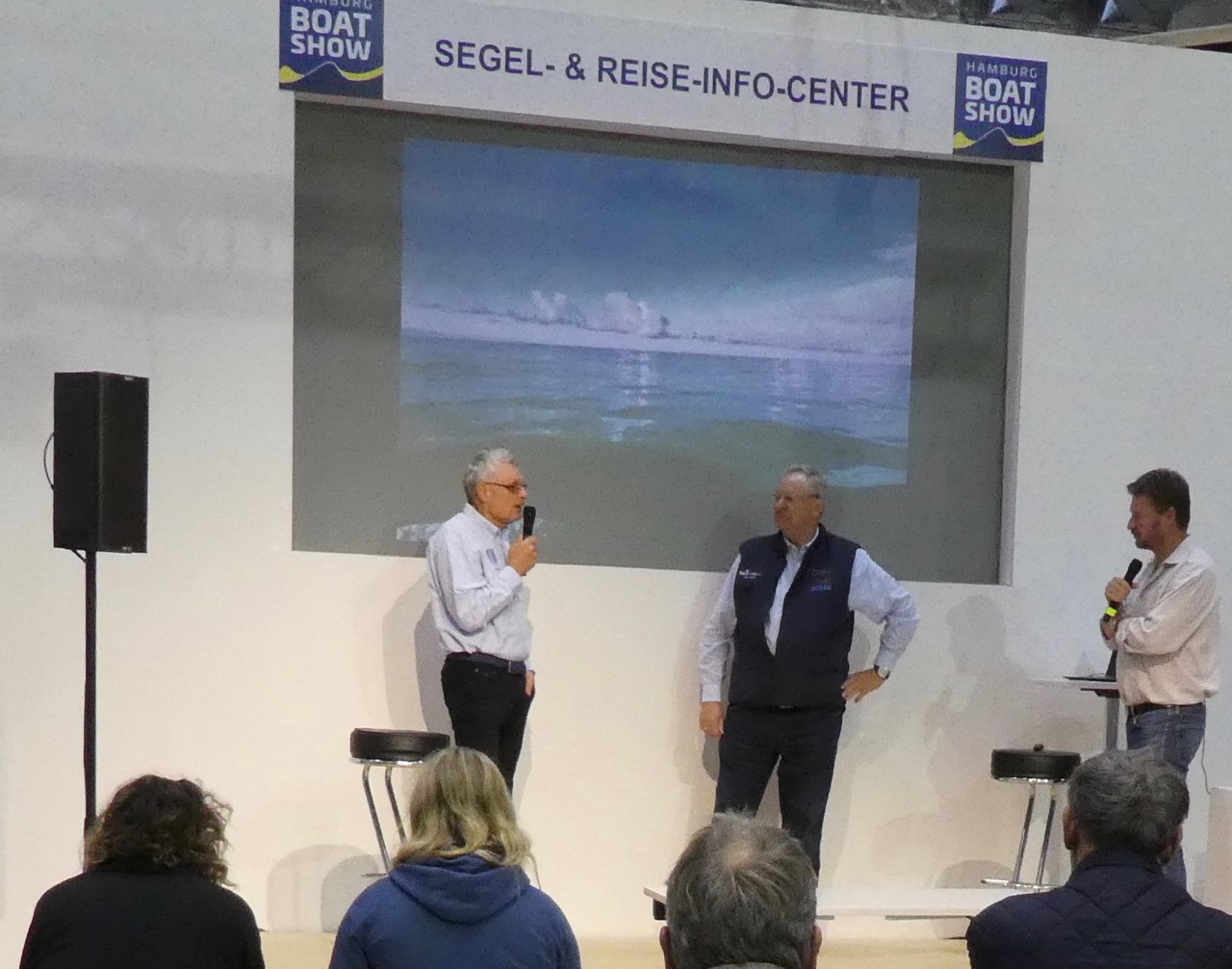 Am Freitag auf der Hamburg Boat Show um 13.30 wieder Jens Nickel und Bert Frisch mit Moderator Andreas Kling auf der Bühne in Halle 6. Thema: Ausrüstung auf Langfahrt. Sonntag nochmal um 14.30