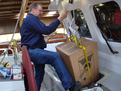 Endlich ist es soweit! Sie schwimmt wieder. Damit sind wir auch wieder an der frischen Luft. Es gibt noch genug zu tun: der Mast wird gerade lackiert und muss dann wieder zusammengebaut werden, ein ziemlicher Job. Wir haben das Deck überholt (heute)und Olaf baut neue Ausgleichsgefässe für’s Kühlwasser. Und es ist insgesamt ein Riesen Chaos zu beseitigen, das Schiff sieht von vorn bis hinten wie eine Werkstatt aus. Elektronisch ist auch noch allerlei nach. Die Kabel liegen, also alles ganz einfach? Plug and pray? Aber Spaß macht’s trotzdem!
