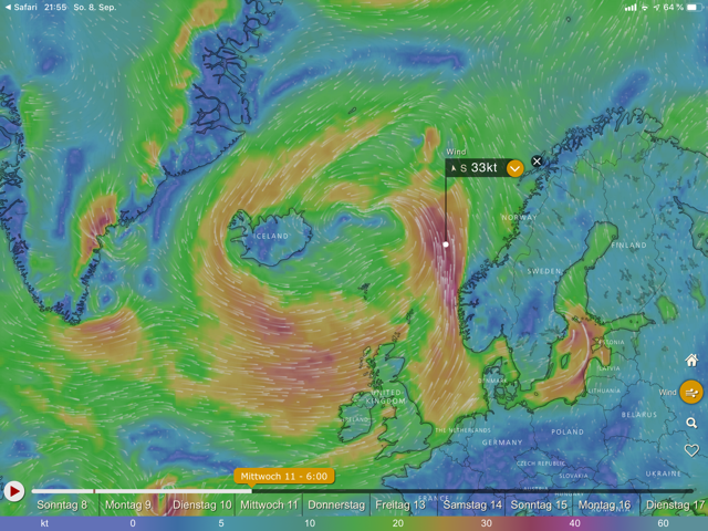 Das ist der Rest vom Hurrikan Darian. Der ist sehr schnell über den Atlantik gezogen. So wie es aussieht will der uns ärgern. Wir machen uns morgen früh auf den Weg, werden aber am Dienstagmorgen nach dem Wetterbericht entscheiden ob wir nach Texel gehen oder nach Helgoland. Geduldiger Skipper hat immer guten Wind sagte mein Vater. Texel würde bedeuten vier bis fünf Tage Zwangspause an einem schönen Ort. Sea U Bert