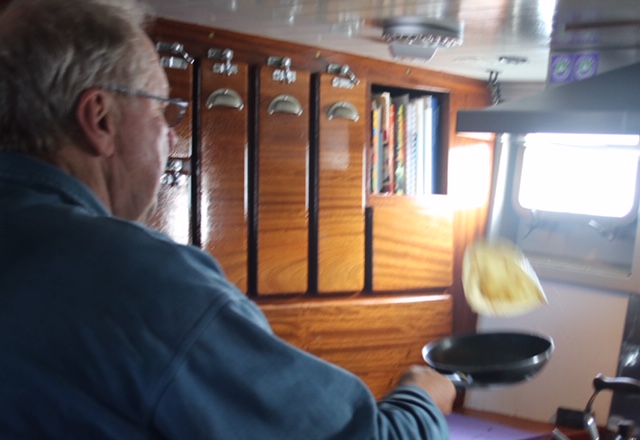 Heute Mittag gabs Hochseepfannkuchen mit Blaubeeren.