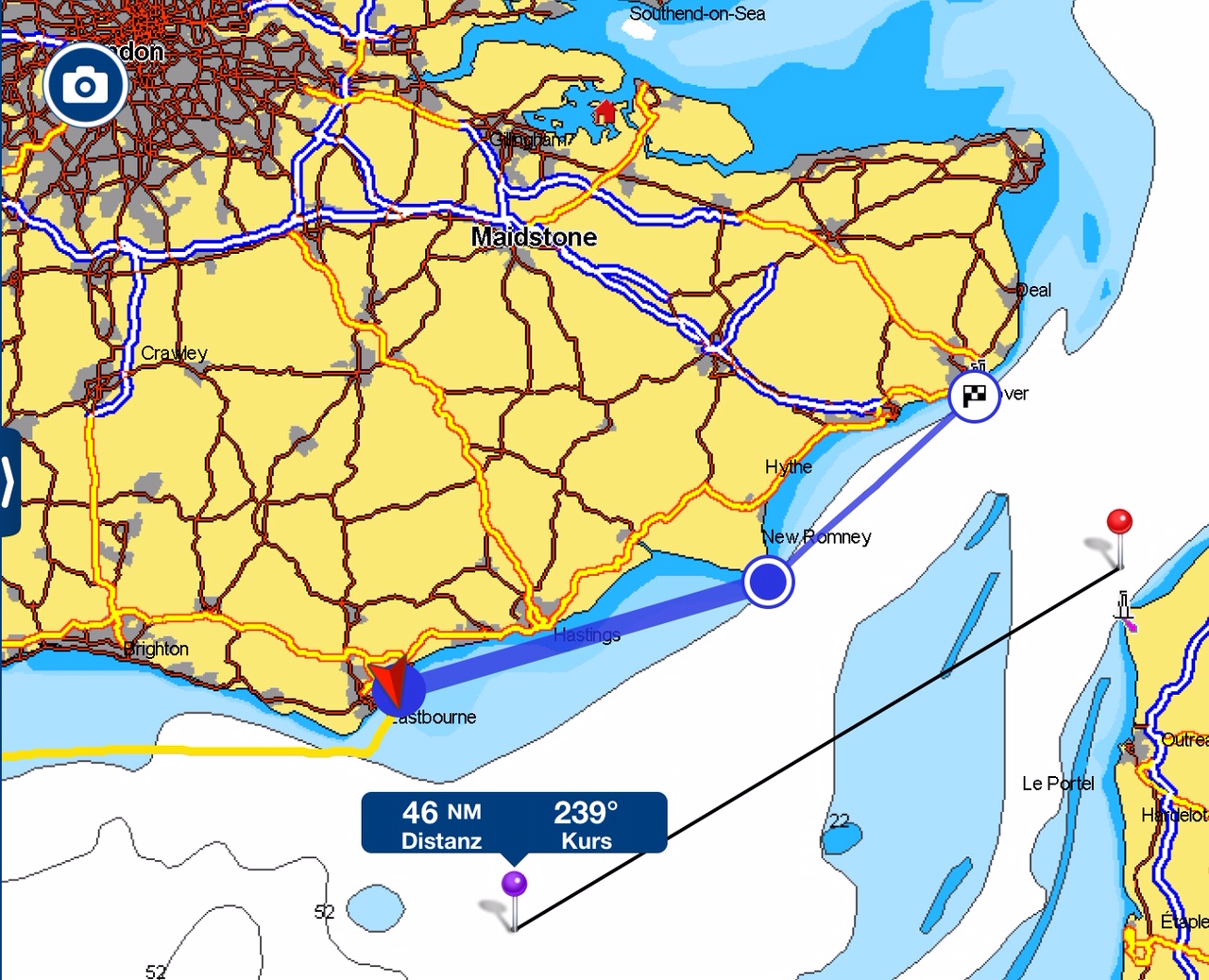 Morgen von Eastbourne nach Dover, das heißt nicht nur so, das ist auch doof. Wenn die Tide uns rechtzeitig dahin schubst versuchen wir noch weiter nach Ramsgate zu kommen. Das ist unser Absprungshafen nach Helgoland. Ein Wetterfenster für die Reise über die Nordsee zeichnet sich ab für Sonntag, Montag, Dienstag. Der Hurrikanrest soll am Mittwoch in die Nordsee kommen. Sea U Bert